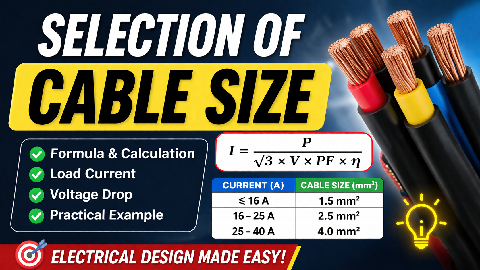 Posted on 6 April 20266 April 2026Posted in ELECTRICAL TECHNOLOGY Cable Sizing Step by Step Method for Cable Selection Post navigation AN INTRODUCTION TO ELECTRICAL POWER SYSTEMSUBSTATION DESIGN TIPS Leave a Reply Cancel replyYour email address will not be published. Required fields are marked *Comment * Name * Email * Website Save my name, email, and website in this browser for the next time I comment.